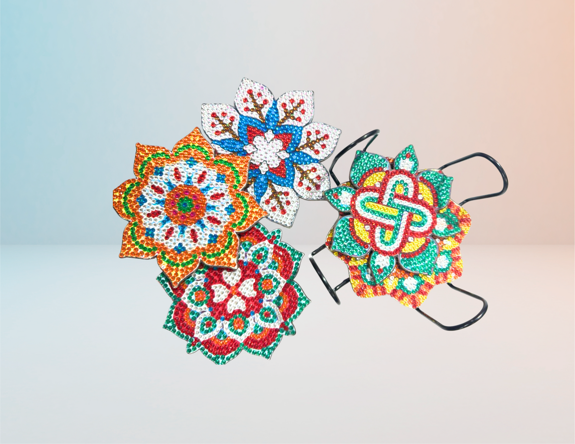 • Set de diamantes multicolor: 💎 Que harán de tu portavasos una verdadera joya llena de luz.